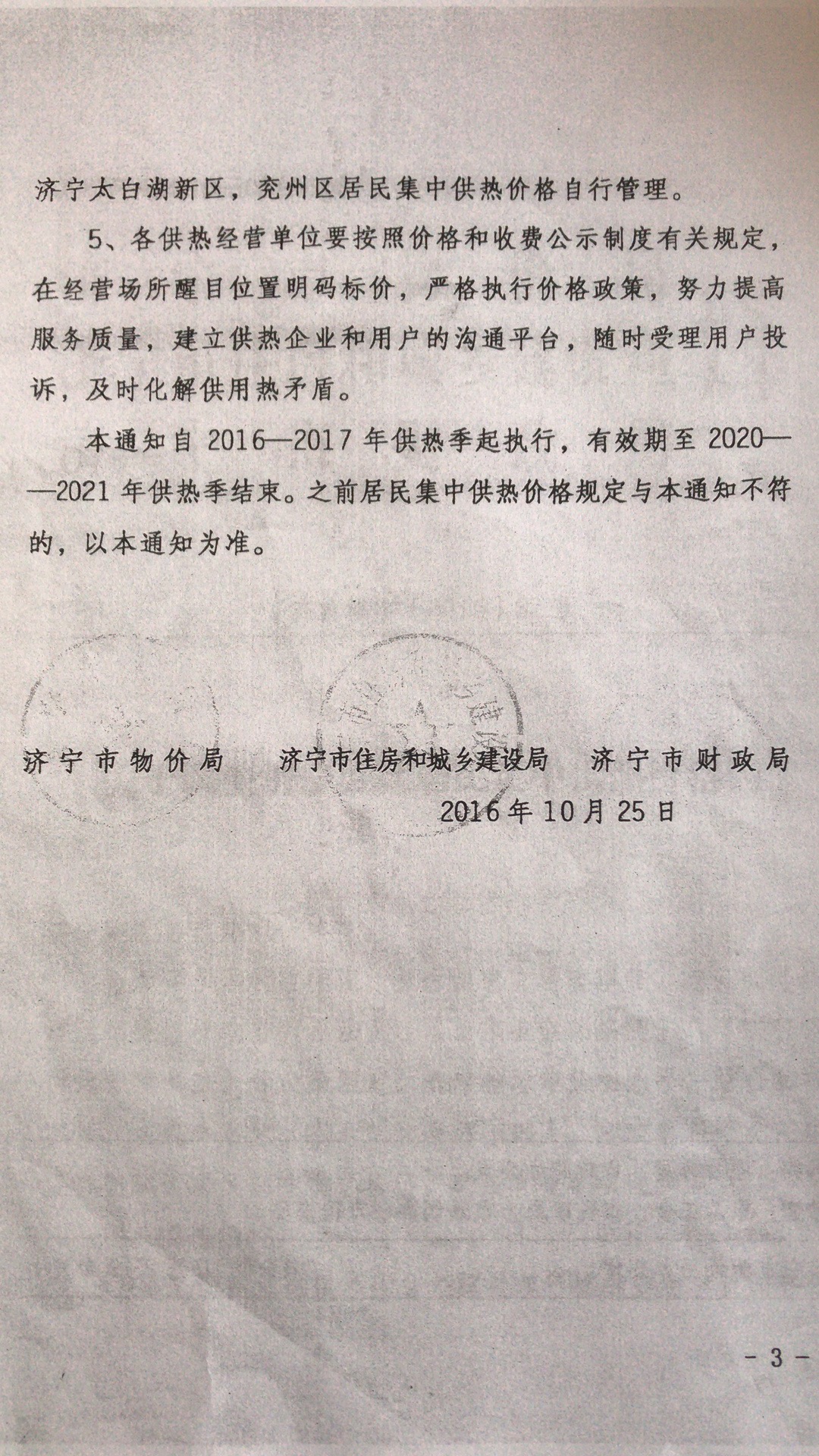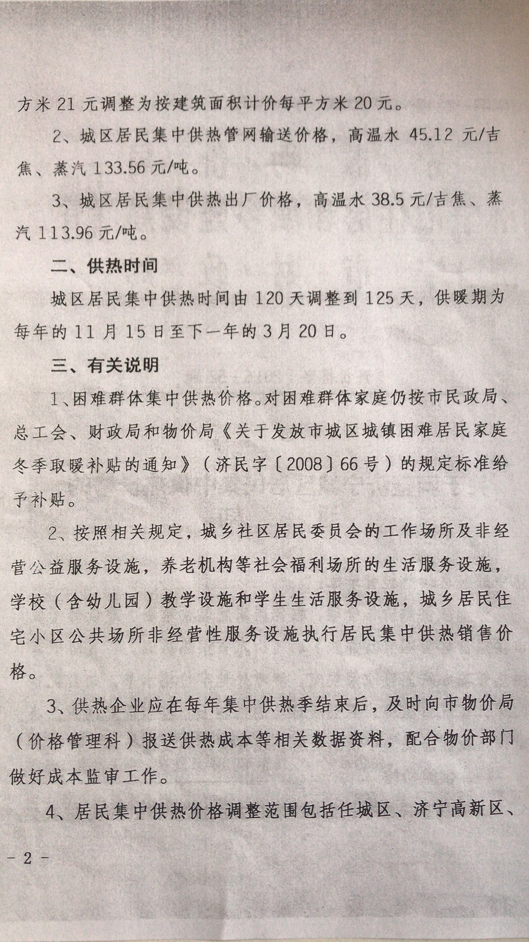 上一篇:四和供熱公司11月4日、5日暖氣打壓通知(請市民家中務必留人!) 下一篇:關于濟寧城區(qū)非居民供熱價格的通知
