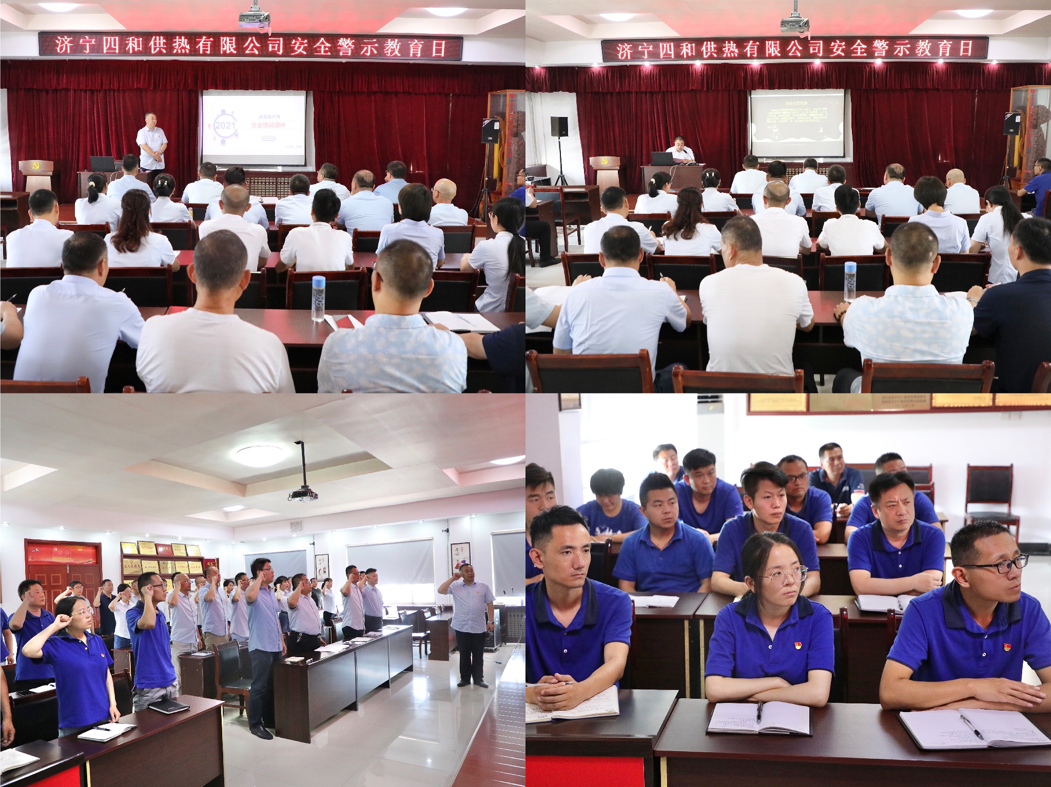 會(huì)議傳達(dá)了山東公用熱電集團(tuán)有限公司2021年“安全生產(chǎn)月”活動(dòng)啟動(dòng)會(huì)會(huì)議精神,宣貫了濟(jì)寧四和供熱有限公司2021“安全生產(chǎn)月”活動(dòng)方案及安全生產(chǎn)標(biāo)準(zhǔn)化達(dá)標(biāo)工作情況。與會(huì)人員共同觀看了《生命重于泰山—-學(xué)習(xí)習(xí)近平總書記關(guān)于安全生產(chǎn)重要論述》專題片。隨后張璟作為領(lǐng)誓人帶領(lǐng)全體黨員干部職工進(jìn)行安全宣誓。