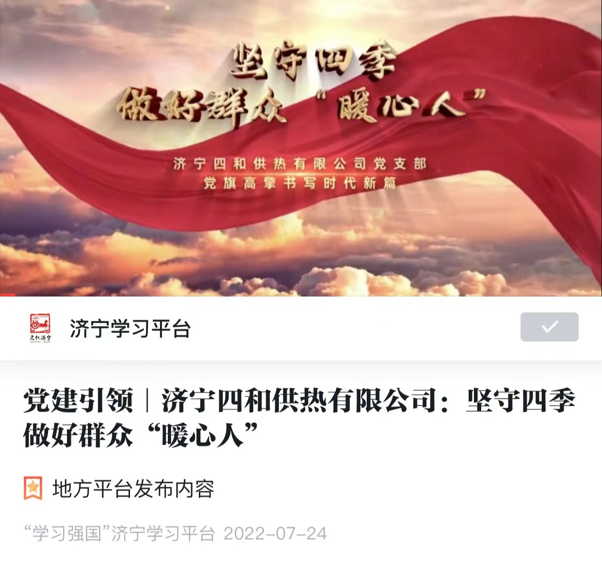 濟寧四和供熱有限公司黨支部微視頻《我和我的支部》榮登“學(xué)習(xí)強國”平臺展播