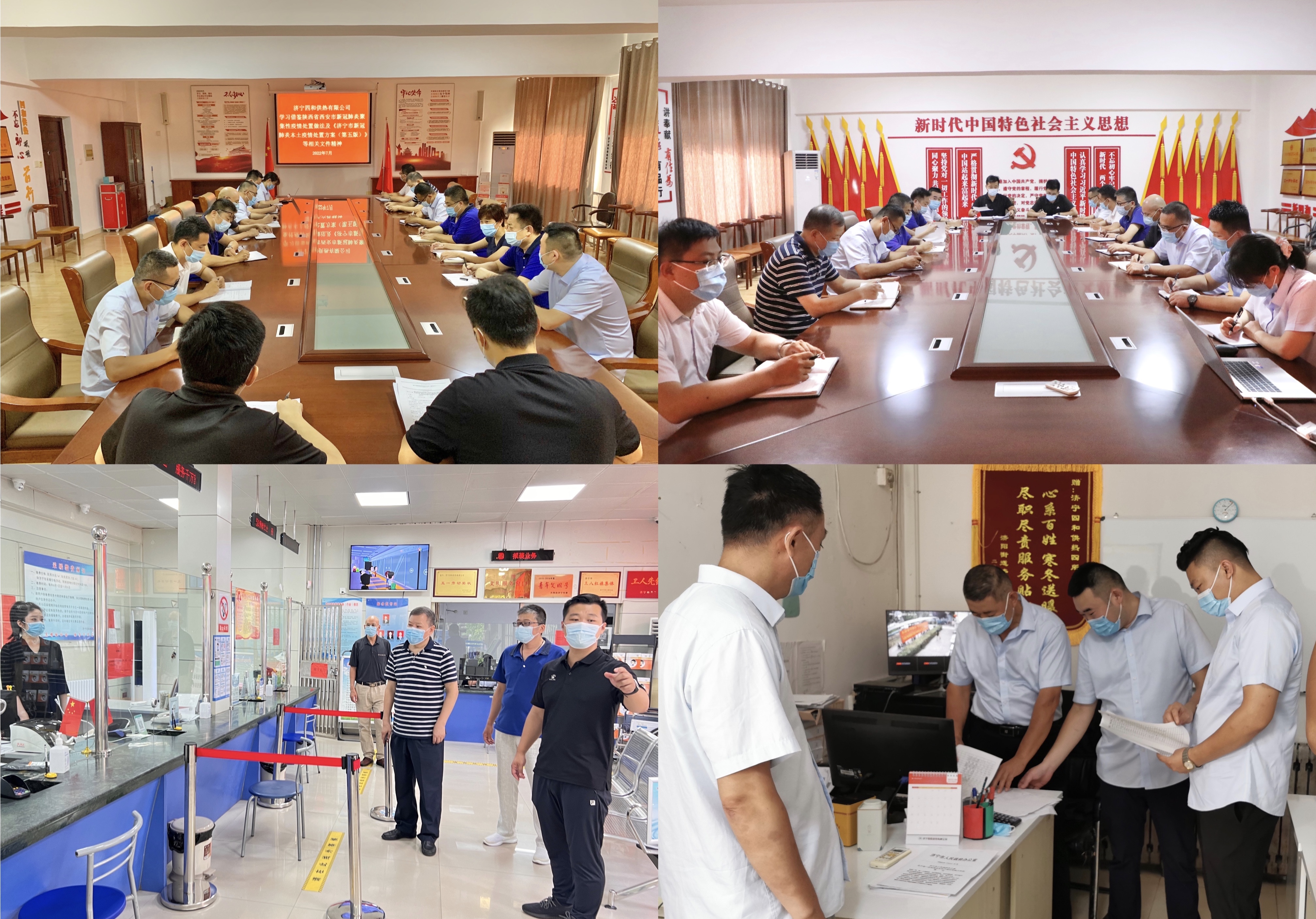 7月27日上午,公司領(lǐng)導(dǎo)及各科室負(fù)責(zé)人召開安全會議專題部署疫情防控工作。會議傳達(dá)并學(xué)習(xí)了《濟(jì)寧市新冠肺炎本土疫情處置方案(第五版)》等相關(guān)重要文件,對公司當(dāng)前形式的防疫工作和運(yùn)行管理上做出部署。會議結(jié)束后,四和供熱公司相關(guān)工作分管領(lǐng)導(dǎo)及科室負(fù)責(zé)人一行先后前往營業(yè)廳、各供熱所進(jìn)行疫情防控工作現(xiàn)場檢查,對疫情防控工作臺賬、防疫物資情況、外出人員登記情況、公共場所消殺記錄等進(jìn)行查閱,并聽取科室負(fù)責(zé)人及所長對疫情防控工作的匯報。